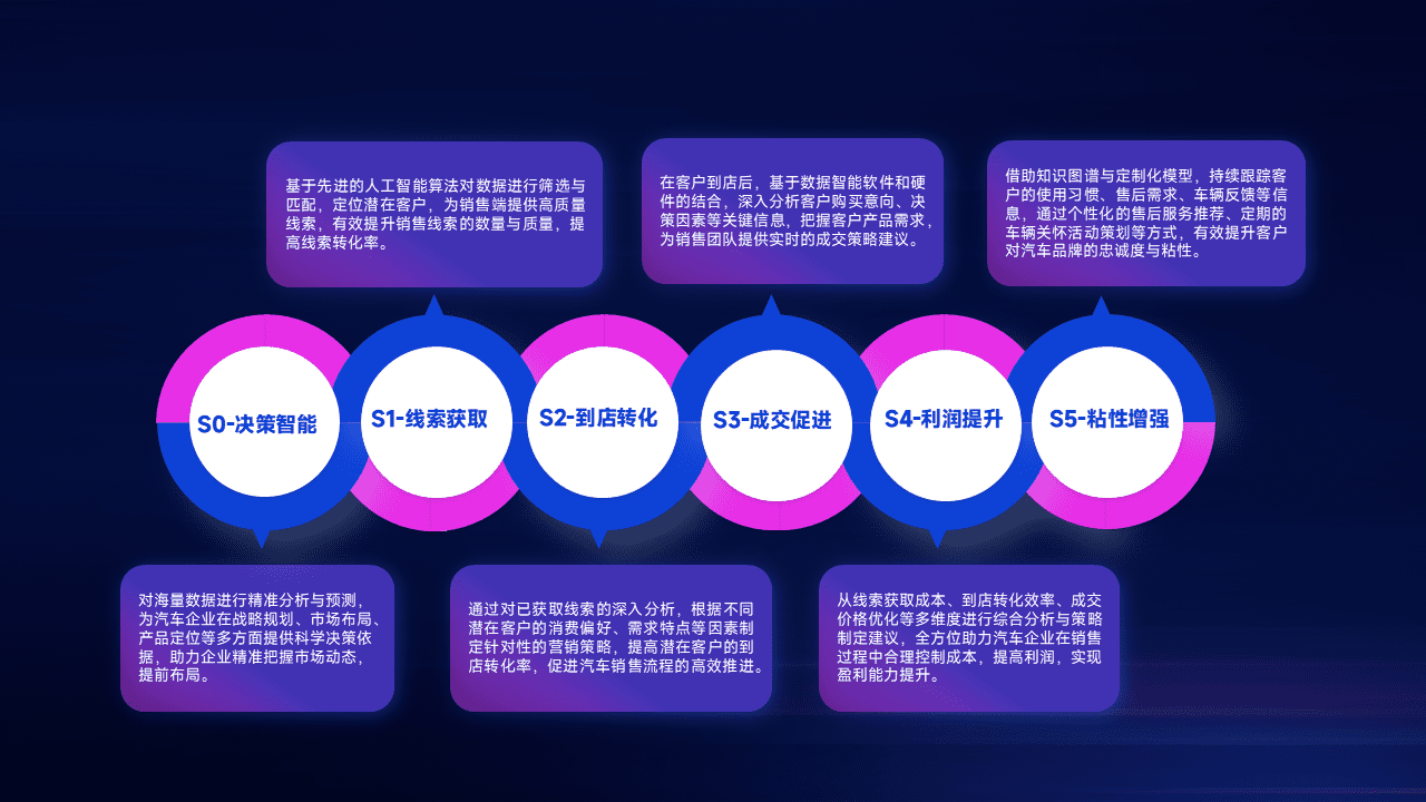 通过拓宽潜在客户来源、、优化线索分配并提高到店转化率,,,,以增强销售效率。。同时,,利用线索数据不断优化分析模型,,,,有效提升转化率,,,扩大营销影响力。。。